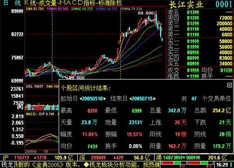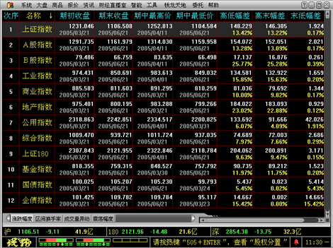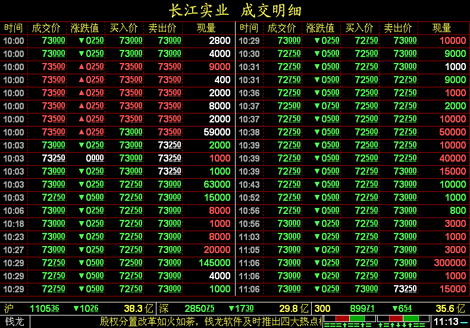 实时走势画面时按热键“↓”、“↑”则可以将画面切换成显示最近连续几天的实时走势(目前最多连续5日)。连贯显示的实时走势,近日的走势动态了然于胸,走势的任何异动迹象都无从藏匿。