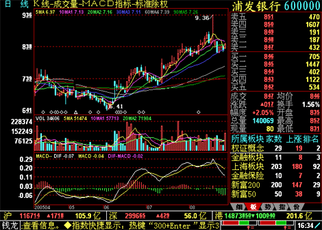 所属板块:连续按“+”键,或者按“板”标签,可以在右下角小窗口中显示当前股票的所属板块。