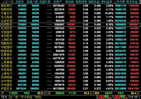 “基本资料分析”功能以表格形式显示各类股票的主要财务数据,可以按照某项数据进行快速排序。