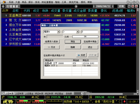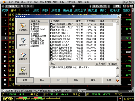 旗舰版的智能选股功能具备完善的系统函数,用户因此可以更加自由地设计出各种各样的指标、选股条件和买卖条件。预设了由专家精心编纂、收集的大量实用选股条件,可以满足用户大部分需求。