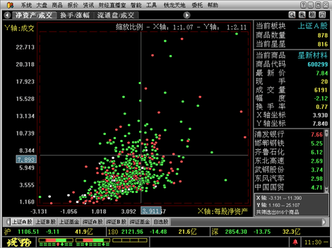 通过星空图来全盘掌握画股票所处的风险区域、成长区域等。